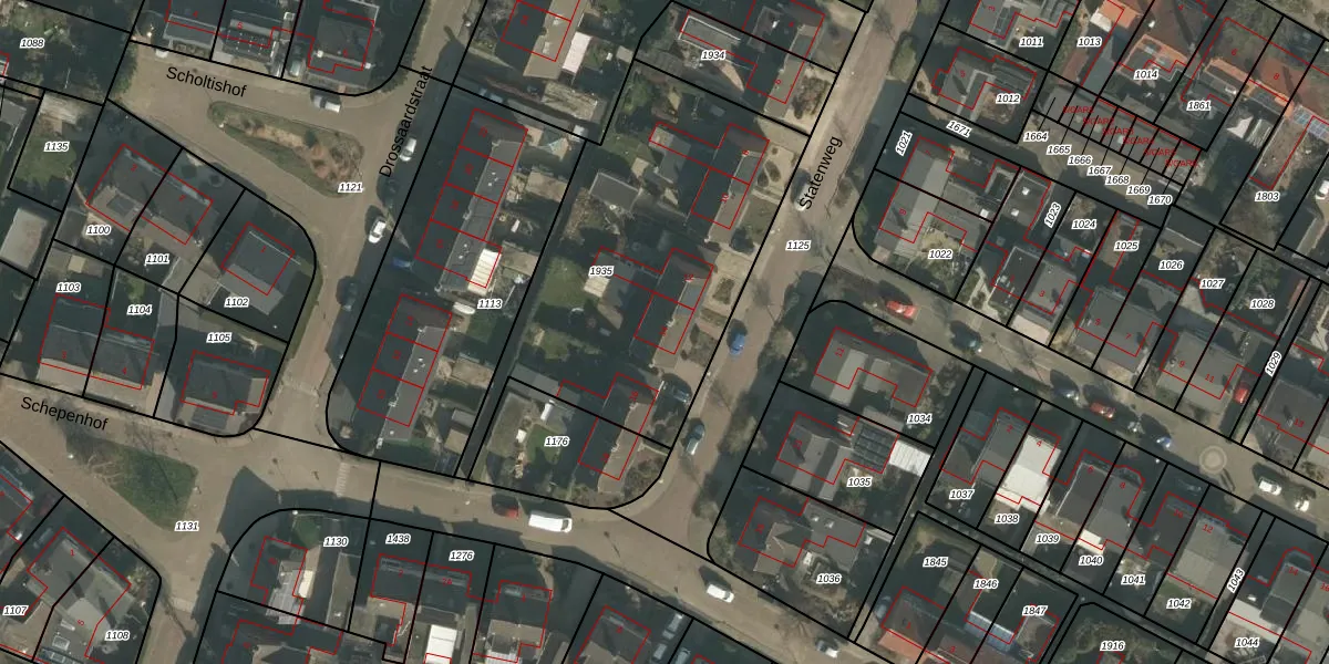 Het perceel waarop Statenweg 14 staat heeft een oppervlakte van 1563 m². Dit is een zeer groot perceel. De perceeloppervlakte wordt geregistreerd door het Kadaster. Gedetailleerde informatie over de maten van dit perceel kunt u vinden in het rapport Kadastrale kaart met maatvoering van Statenweg 14.