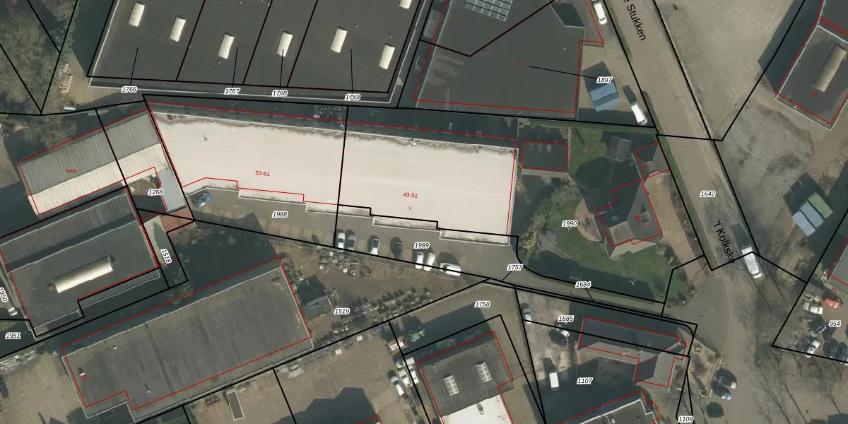 Het perceel waarop 't Kolkske 47 staat heeft een oppervlakte van 2564 m². Dit is een zeer groot perceel. De perceeloppervlakte wordt geregistreerd door het Kadaster. Gedetailleerde informatie over de maten van dit perceel kunt u vinden in het rapport Kadastrale kaart met maatvoering van 't Kolkske 47.