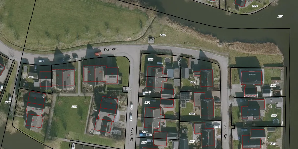 De Terp 1 is gelegen op kadastraal perceel RDH00A2672. Deze kadastrale aanduiding is uniek en wordt gebruikt door het Kadaster om eigendomsrechten en andere zakelijke rechten vast te leggen. Het perceel maakt onderdeel uit van de kadastrale gemeente Roordahuizum.