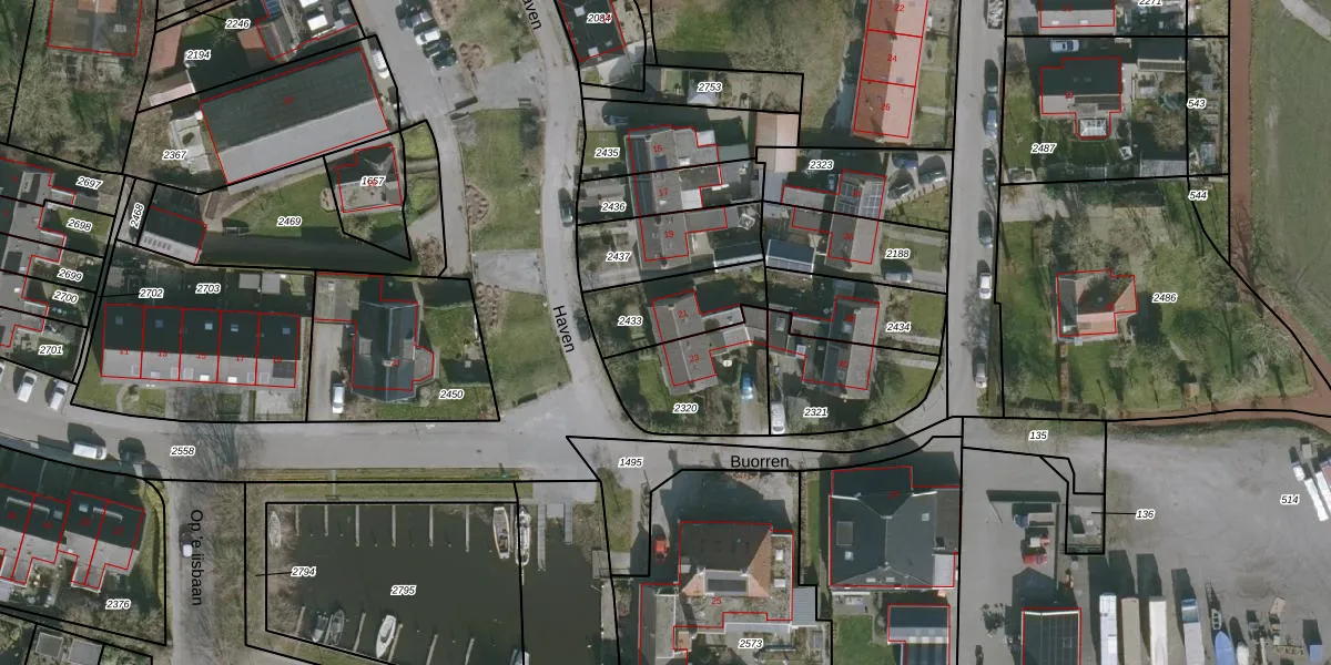Het perceel waarop Haven 21 staat heeft een oppervlakte van 245 m². Dit is een middelgroot perceel. De perceeloppervlakte wordt geregistreerd door het Kadaster. Gedetailleerde informatie over de maten van dit perceel kunt u vinden in het rapport Kadastrale kaart met maatvoering van Haven 21.