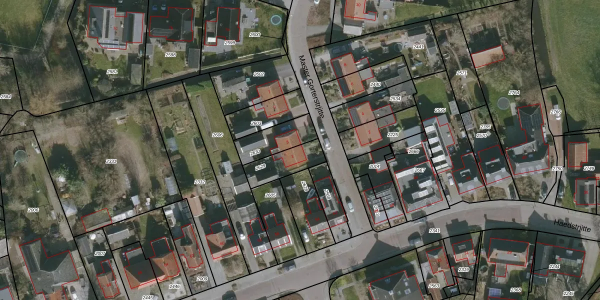 Master Gorterstrjitte 1 is gelegen op kadastraal perceel RDH00A2629. Deze kadastrale aanduiding is uniek en wordt gebruikt door het Kadaster om eigendomsrechten en andere zakelijke rechten vast te leggen. Het perceel maakt onderdeel uit van de kadastrale gemeente Roordahuizum.