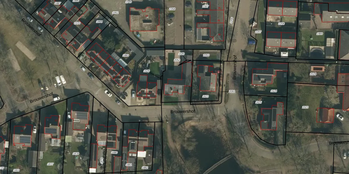 Het perceel waarop Brouwershof 8 staat heeft een oppervlakte van 493 m². Dit is een groot perceel. De perceeloppervlakte wordt geregistreerd door het Kadaster. Gedetailleerde informatie over de maten van dit perceel kunt u vinden in het rapport Kadastrale kaart met maatvoering van Brouwershof 8.