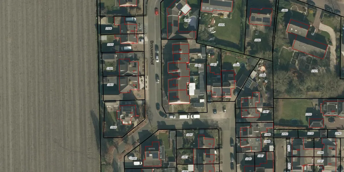 Het perceel waarop Brouwershof 80 staat heeft een oppervlakte van 1090 m². Dit is een zeer groot perceel. De perceeloppervlakte wordt geregistreerd door het Kadaster. Gedetailleerde informatie over de maten van dit perceel kunt u vinden in het rapport Kadastrale kaart met maatvoering van Brouwershof 80.
