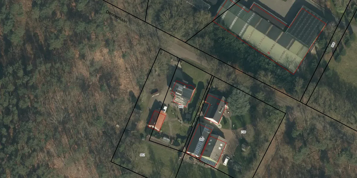 Dennenlaan 8 is gelegen op kadastraal perceel SCH03G850. Deze kadastrale aanduiding is uniek en wordt gebruikt door het Kadaster om eigendomsrechten en andere zakelijke rechten vast te leggen. Het perceel maakt onderdeel uit van de kadastrale gemeente Schaijk.