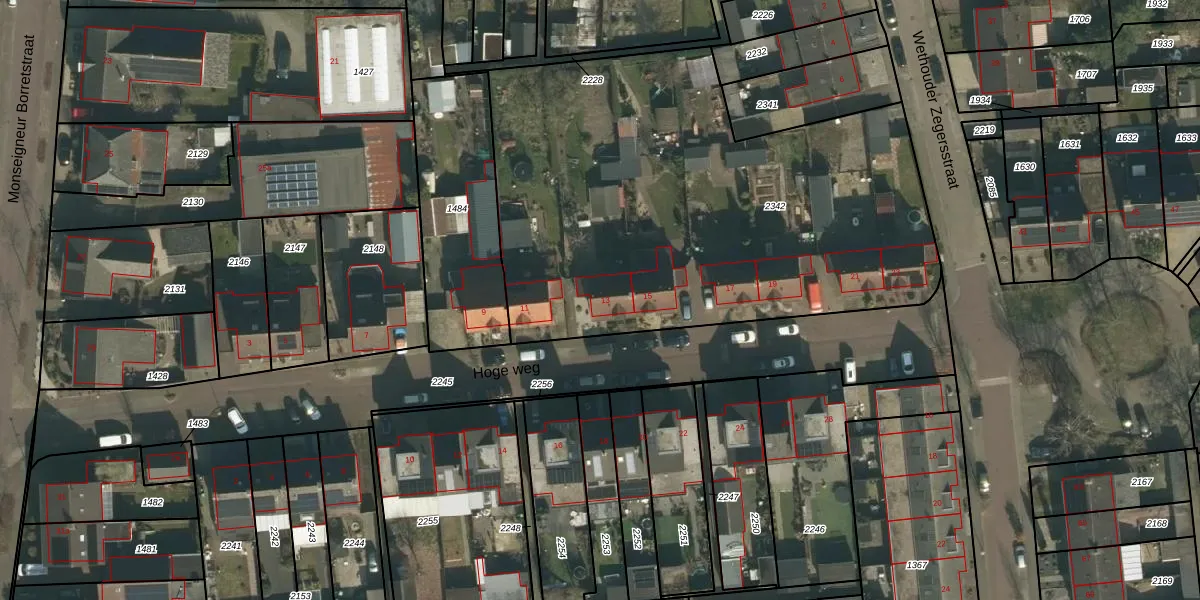 Het perceel waarop Hoge weg 13 staat heeft een oppervlakte van 2821 m². Dit is een zeer groot perceel. De perceeloppervlakte wordt geregistreerd door het Kadaster. Gedetailleerde informatie over de maten van dit perceel kunt u vinden in het rapport Kadastrale kaart met maatvoering van Hoge weg 13.
