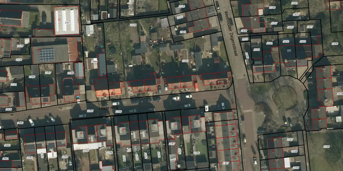 Het perceel waarop Hoge weg 17 staat heeft een oppervlakte van 2821 m². Dit is een zeer groot perceel. De perceeloppervlakte wordt geregistreerd door het Kadaster. Gedetailleerde informatie over de maten van dit perceel kunt u vinden in het rapport Kadastrale kaart met maatvoering van Hoge weg 17.