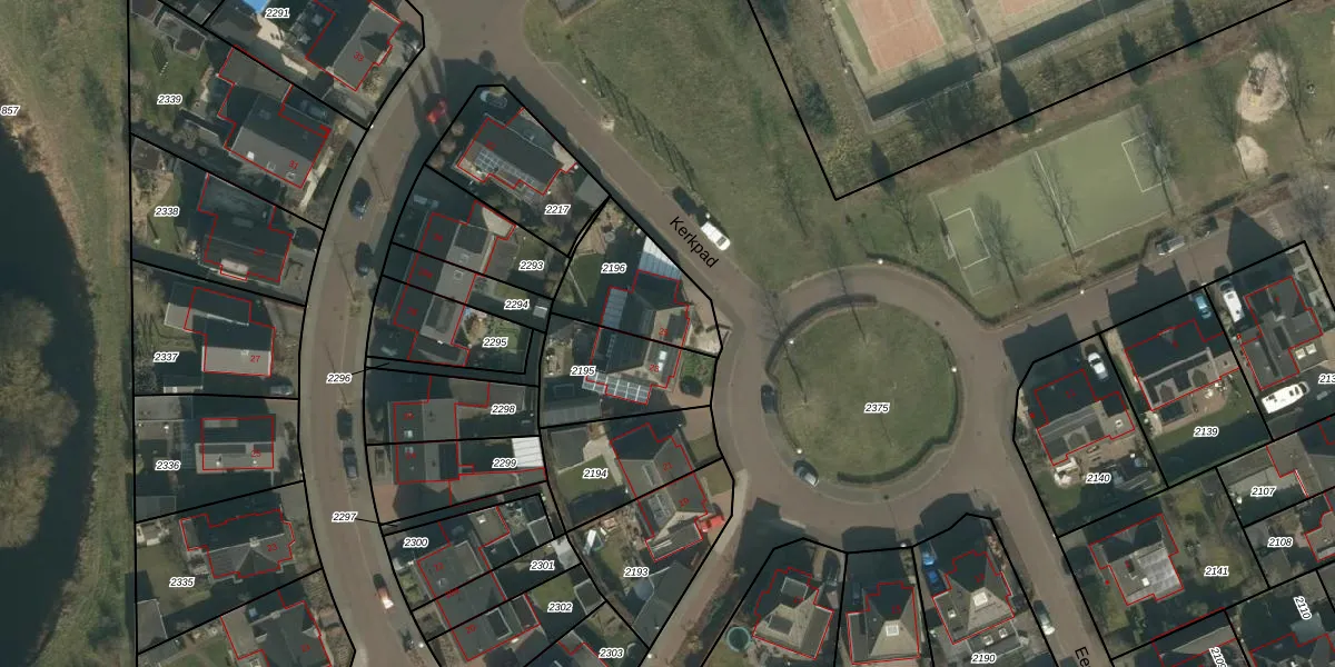 Het perceel waarop Kerkpad 25 staat heeft een oppervlakte van 319 m². Dit is een groot perceel. De perceeloppervlakte wordt geregistreerd door het Kadaster. Gedetailleerde informatie over de maten van dit perceel kunt u vinden in het rapport Kadastrale kaart met maatvoering van Kerkpad 25.