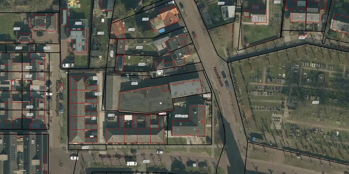 Noordhoek 13-a is gelegen op kadastraal perceel SCH03E1813. Deze kadastrale aanduiding is uniek en wordt gebruikt door het Kadaster om eigendomsrechten en andere zakelijke rechten vast te leggen. Het perceel maakt onderdeel uit van de kadastrale gemeente Schaijk.