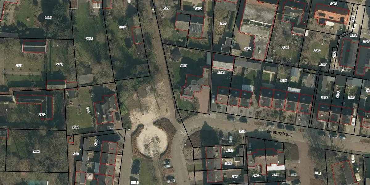 Het perceel waarop Soeterstraat 1 staat heeft een oppervlakte van 755 m². Dit is een groot perceel. De perceeloppervlakte wordt geregistreerd door het Kadaster. Gedetailleerde informatie over de maten van dit perceel kunt u vinden in het rapport Kadastrale kaart met maatvoering van Soeterstraat 1.