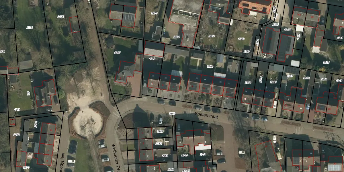 Soeterstraat 7 is gelegen op kadastraal perceel SCH03E2309. Deze kadastrale aanduiding is uniek en wordt gebruikt door het Kadaster om eigendomsrechten en andere zakelijke rechten vast te leggen. Het perceel maakt onderdeel uit van de kadastrale gemeente Schaijk.