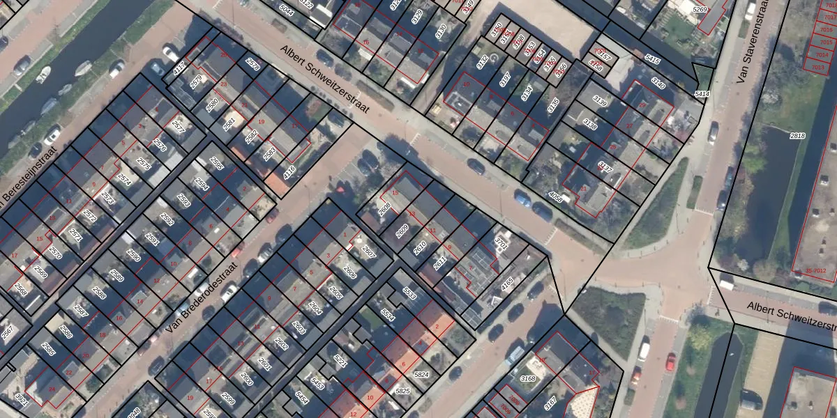 Gebruik de zoekbalk of klik op een perceel voor informatie over de adressen binnen dit perceel.
