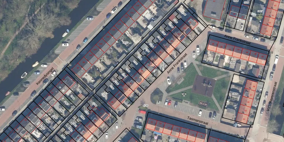Anne Frankstraat 39 is gelegen op kadastraal perceel RWK02B2792. Deze kadastrale aanduiding is uniek en wordt gebruikt door het Kadaster om eigendomsrechten en andere zakelijke rechten vast te leggen. Het perceel maakt onderdeel uit van de kadastrale gemeente Reeuwijk.