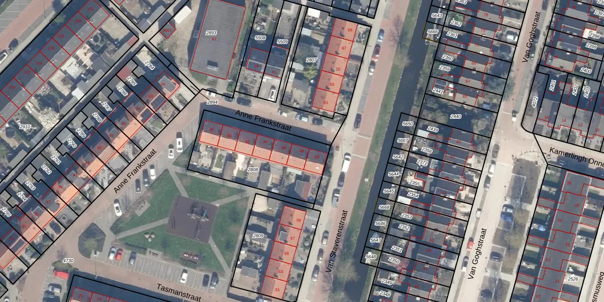 Het perceel waarop Anne Frankstraat 48 staat heeft een oppervlakte van 891 m². Dit is een groot perceel. De perceeloppervlakte wordt geregistreerd door het Kadaster. Gedetailleerde informatie over de maten van dit perceel kunt u vinden in het rapport Kadastrale kaart met maatvoering van Anne Frankstraat 48.