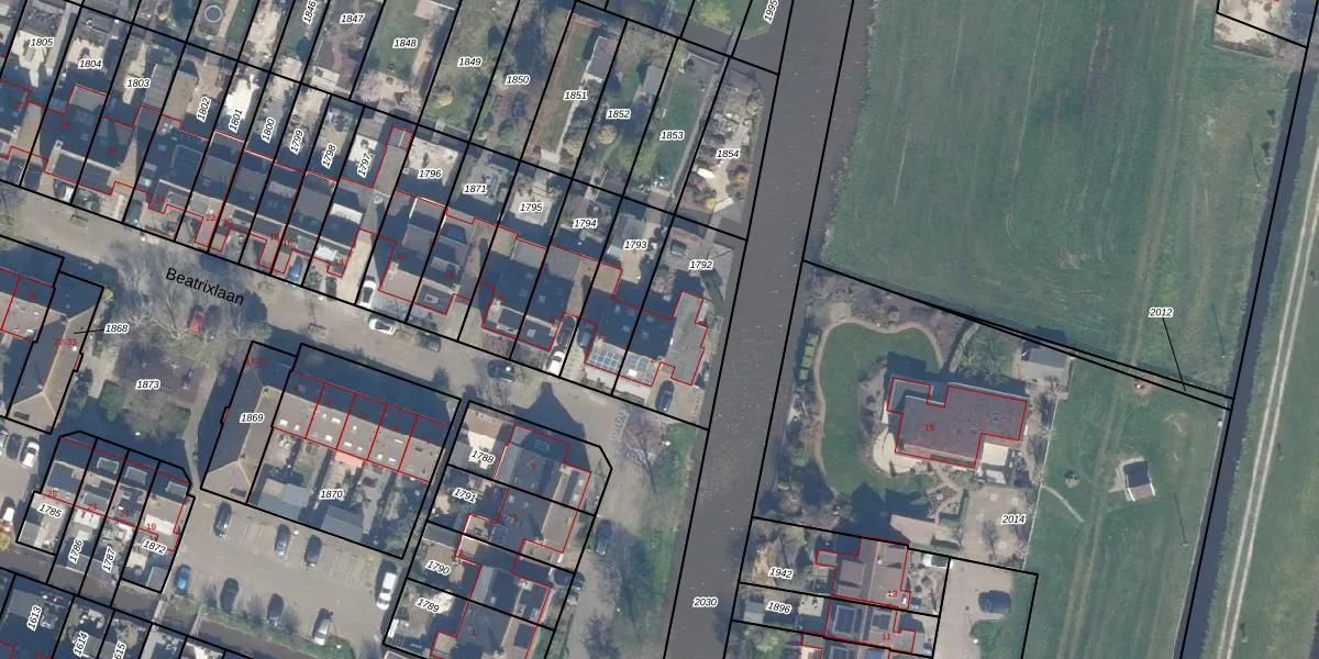 Het perceel waarop Beatrixlaan 2 staat heeft een oppervlakte van 403 m². Dit is een groot perceel. De perceeloppervlakte wordt geregistreerd door het Kadaster. Gedetailleerde informatie over de maten van dit perceel kunt u vinden in het rapport Kadastrale kaart met maatvoering van Beatrixlaan 2.