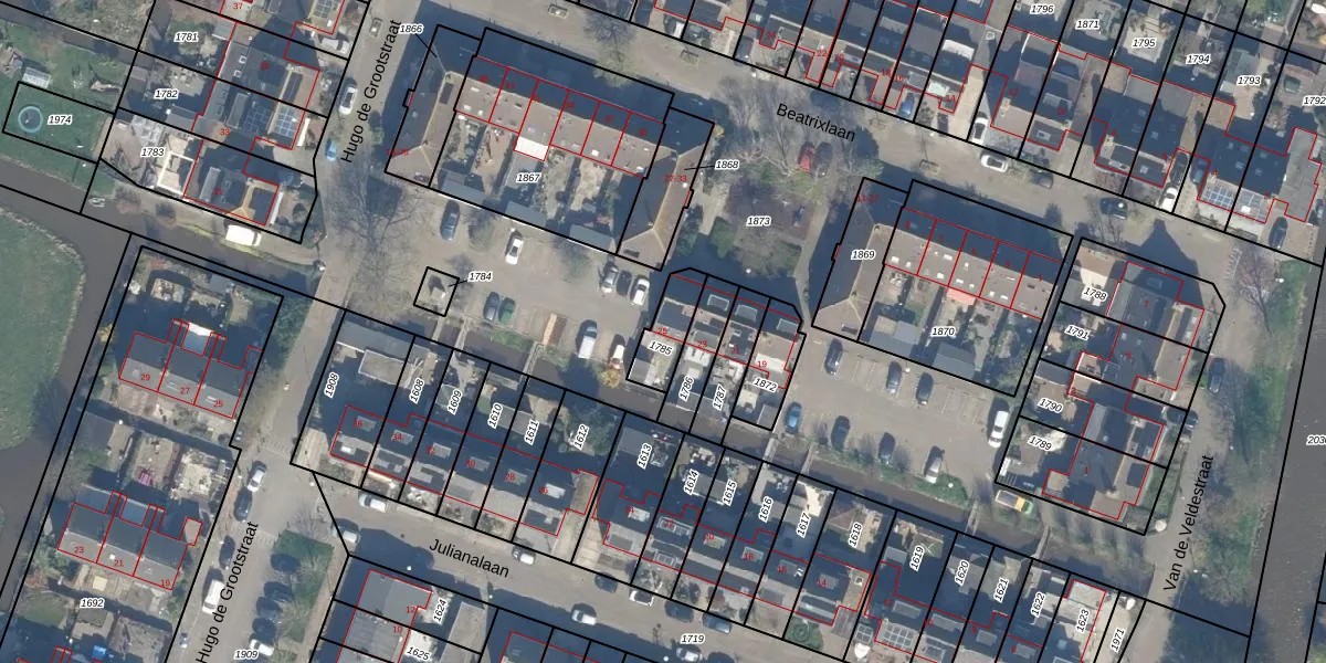 Beatrixlaan 25 is gelegen op kadastraal perceel RWK02D1785. Deze kadastrale aanduiding is uniek en wordt gebruikt door het Kadaster om eigendomsrechten en andere zakelijke rechten vast te leggen. Het perceel maakt onderdeel uit van de kadastrale gemeente Reeuwijk.