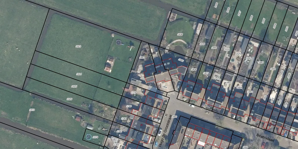 Beatrixlaan 42 is gelegen op kadastraal perceel RWK02D1863. Deze kadastrale aanduiding is uniek en wordt gebruikt door het Kadaster om eigendomsrechten en andere zakelijke rechten vast te leggen. Het perceel maakt onderdeel uit van de kadastrale gemeente Reeuwijk.
