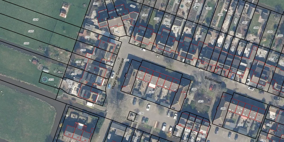 Beatrixlaan 45 is gelegen op kadastraal perceel RWK02D1867. Deze kadastrale aanduiding is uniek en wordt gebruikt door het Kadaster om eigendomsrechten en andere zakelijke rechten vast te leggen. Het perceel maakt onderdeel uit van de kadastrale gemeente Reeuwijk.