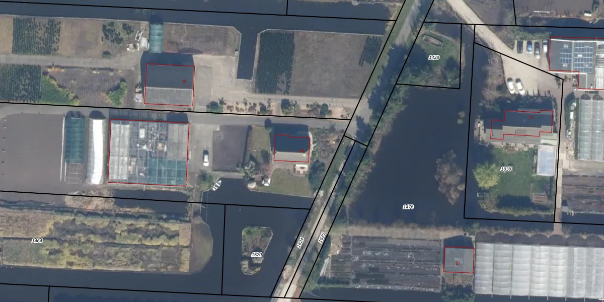 Het adres ligt op het perceel RWK02-A-1435, dat zich in de kadastrale gemeente Reeuwijk bevindt. De oppervlakte van het perceel is 8470 m². Dat is groter dan gemiddeld in Reeuwijk, waar de gemiddelde perceeloppervlakte op 4988,61 m² ligt. De grootste perceeloppervlakte in de kadastrale gemeente is 1,50 km². De kleinste oppervlakte bedraagt 0 m². Er zijn geen andere adressen aanwezig op het perceel. De laatste wijziging in het de Basisregistratie Kadaster (BRK) was op 16-09-2005.