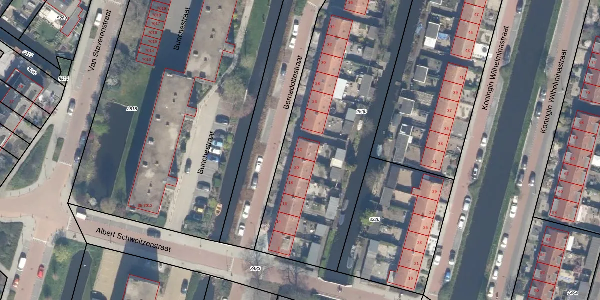 Bernadottestraat 22 is gelegen op kadastraal perceel RWK02B2500. Deze kadastrale aanduiding is uniek en wordt gebruikt door het Kadaster om eigendomsrechten en andere zakelijke rechten vast te leggen. Het perceel maakt onderdeel uit van de kadastrale gemeente Reeuwijk.