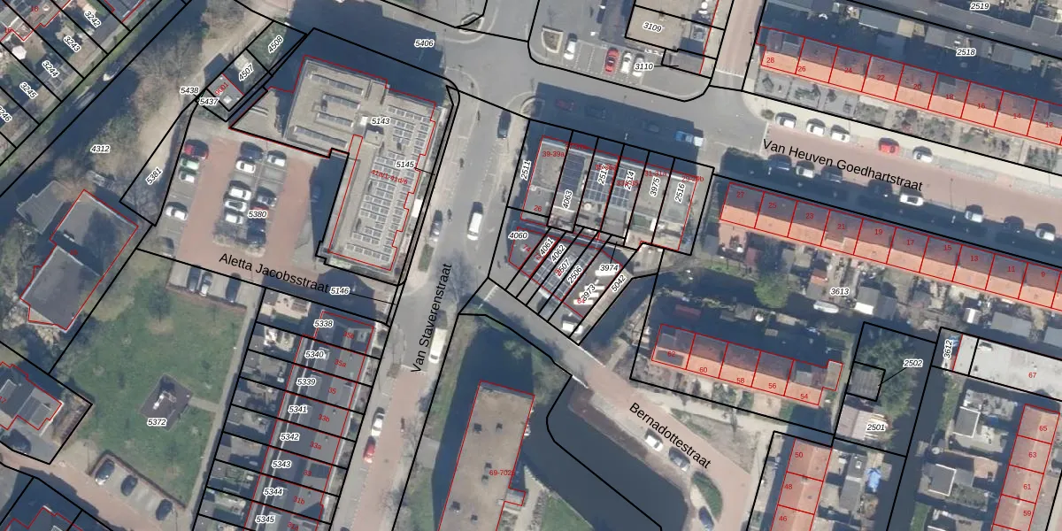 Het perceel waarop Bernadottestraat 72 staat heeft een oppervlakte van 39 m². Dit is een klein perceel. De perceeloppervlakte wordt geregistreerd door het Kadaster. Gedetailleerde informatie over de maten van dit perceel kunt u vinden in het rapport Kadastrale kaart met maatvoering van Bernadottestraat 72.