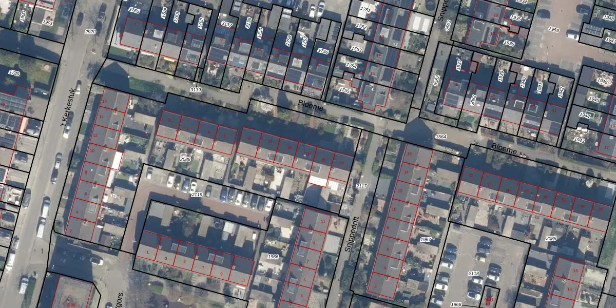 Het perceel waarop Bloeme 16 staat heeft een oppervlakte van 2911 m². Dit is een zeer groot perceel. De perceeloppervlakte wordt geregistreerd door het Kadaster. Gedetailleerde informatie over de maten van dit perceel kunt u vinden in het rapport Kadastrale kaart met maatvoering van Bloeme 16.