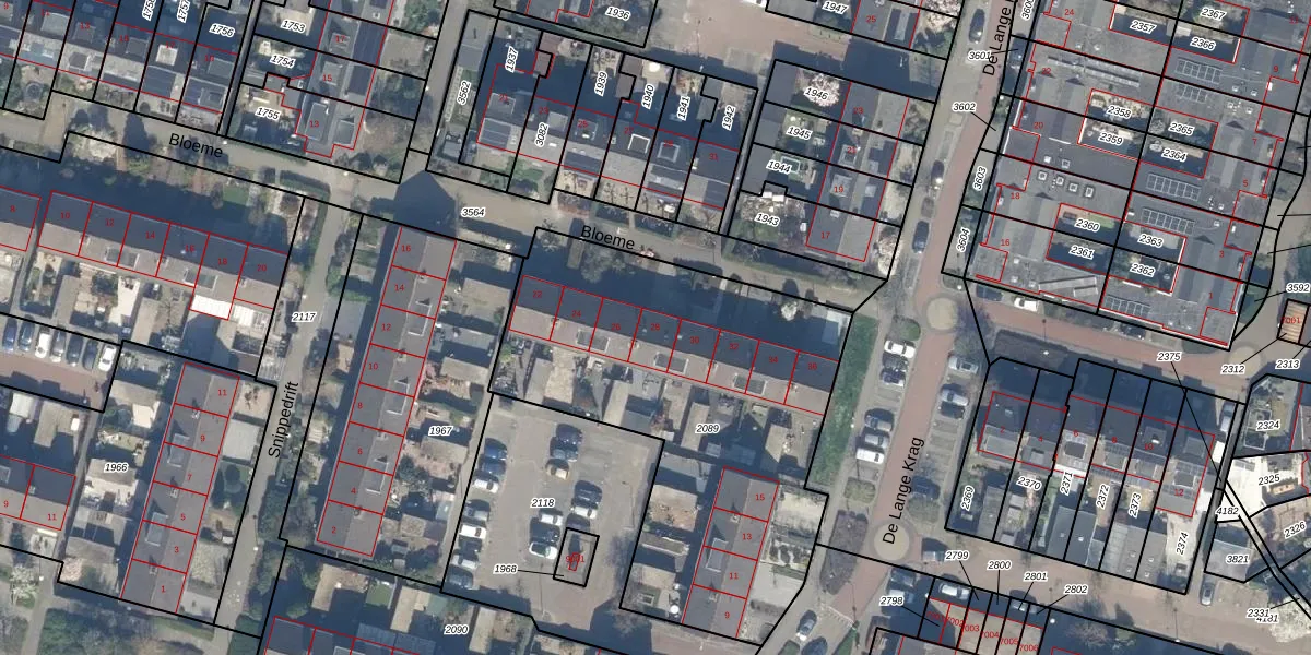 Het perceel waarop Bloeme 28 staat heeft een oppervlakte van 2015 m². Dit is een zeer groot perceel. De perceeloppervlakte wordt geregistreerd door het Kadaster. Gedetailleerde informatie over de maten van dit perceel kunt u vinden in het rapport Kadastrale kaart met maatvoering van Bloeme 28.