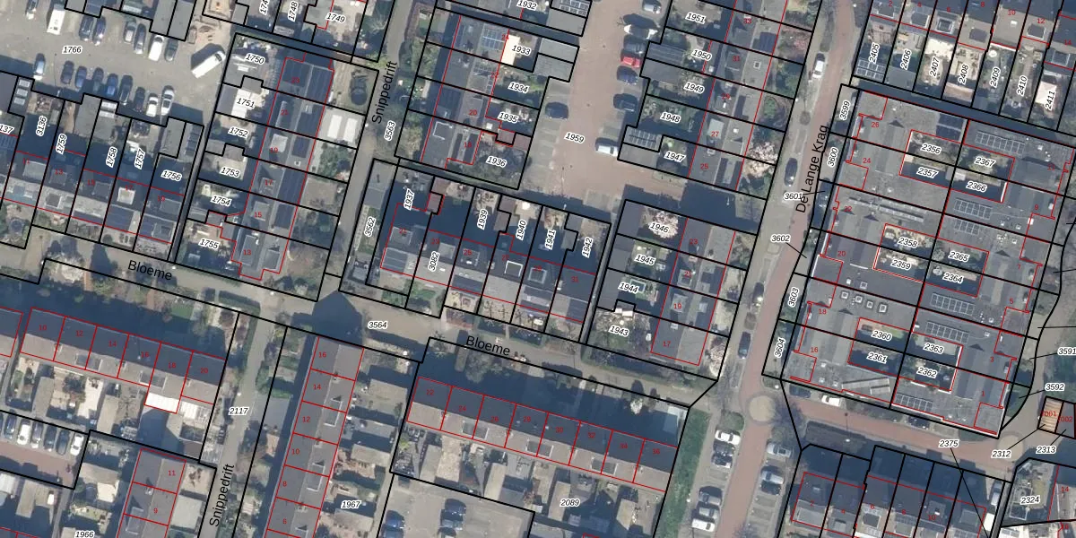 Gebruik de zoekbalk of klik op een perceel voor informatie over de adressen binnen dit perceel.