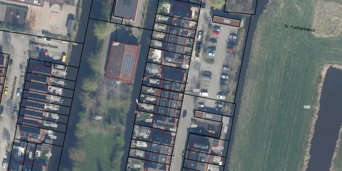 Brede Schouw 17 is gelegen op kadastraal perceel RWK02B5000. Deze kadastrale aanduiding is uniek en wordt gebruikt door het Kadaster om eigendomsrechten en andere zakelijke rechten vast te leggen. Het perceel maakt onderdeel uit van de kadastrale gemeente Reeuwijk.