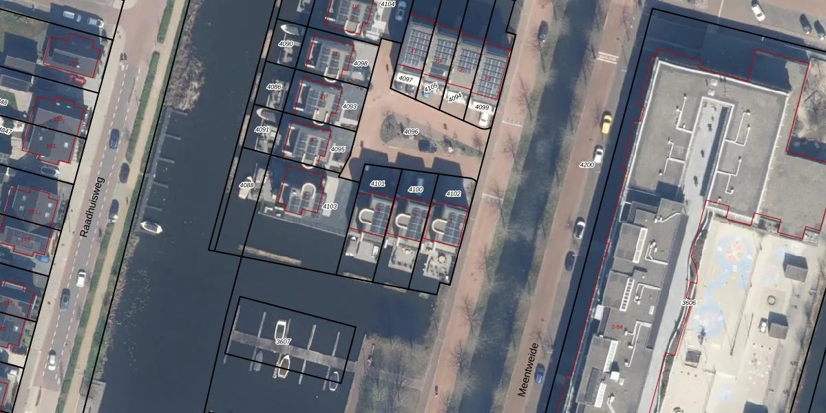 Het adres is gelegen op perceel 4100 in de sectie C en de kadastrale gemeente Reeuwijk. De kadastrale aanduiding is aldus RWK02-C-4100. Het perceel is kleiner dan gemiddeld in Reeuwijk. Het perceel is 252 m² groot, terwijl het gemiddelde ligt op 4985,57 m². De grootste perceeloppervlakte in de kadastrale gemeente is 1,50 km². De kleinste oppervlakte bedraagt 0 m². Op het perceel bevinden zich geen andere adressen. In de Basisregistratie Kadaster (BRK) werden de grenzen van het perceel geregistreerd op 22-02-2024.