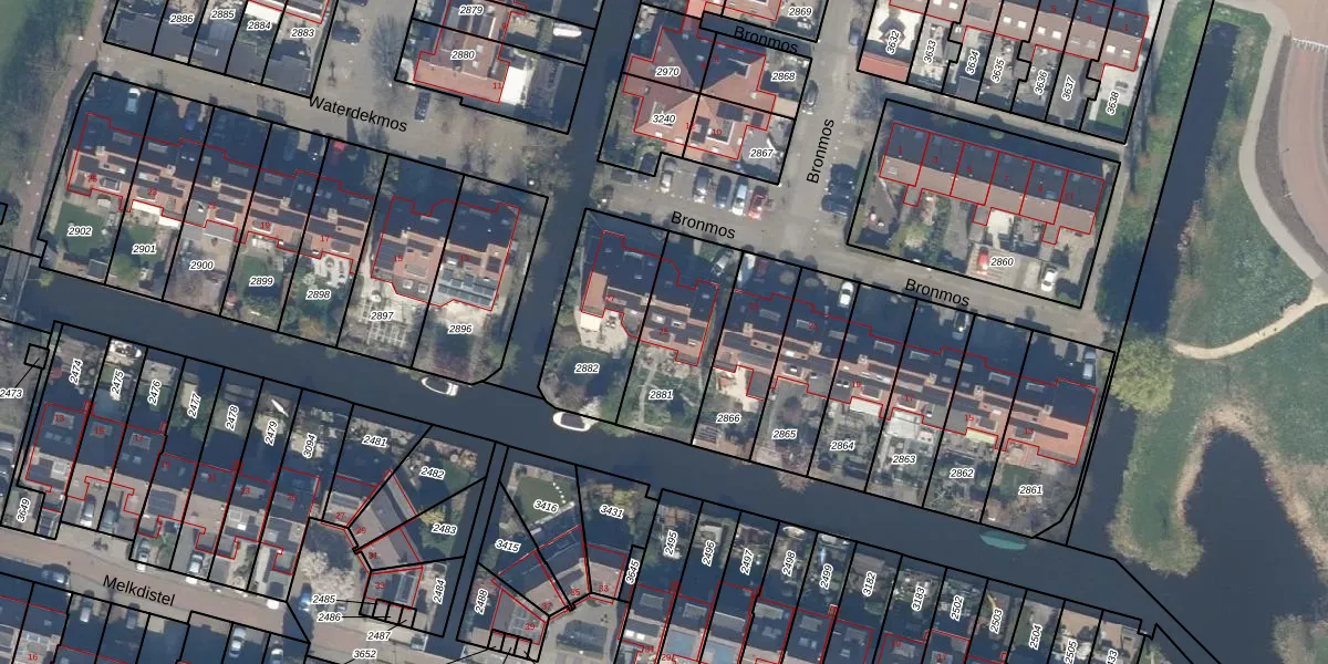 Het perceel waarop Bronmos 25 staat heeft een oppervlakte van 355 m². Dit is een groot perceel. De perceeloppervlakte wordt geregistreerd door het Kadaster. Gedetailleerde informatie over de maten van dit perceel kunt u vinden in het rapport Kadastrale kaart met maatvoering van Bronmos 25.