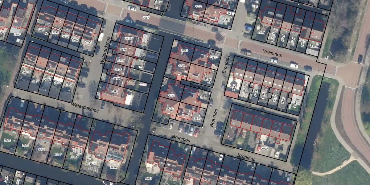 Gebruik de zoekbalk of klik op een perceel voor informatie over de adressen binnen dit perceel.