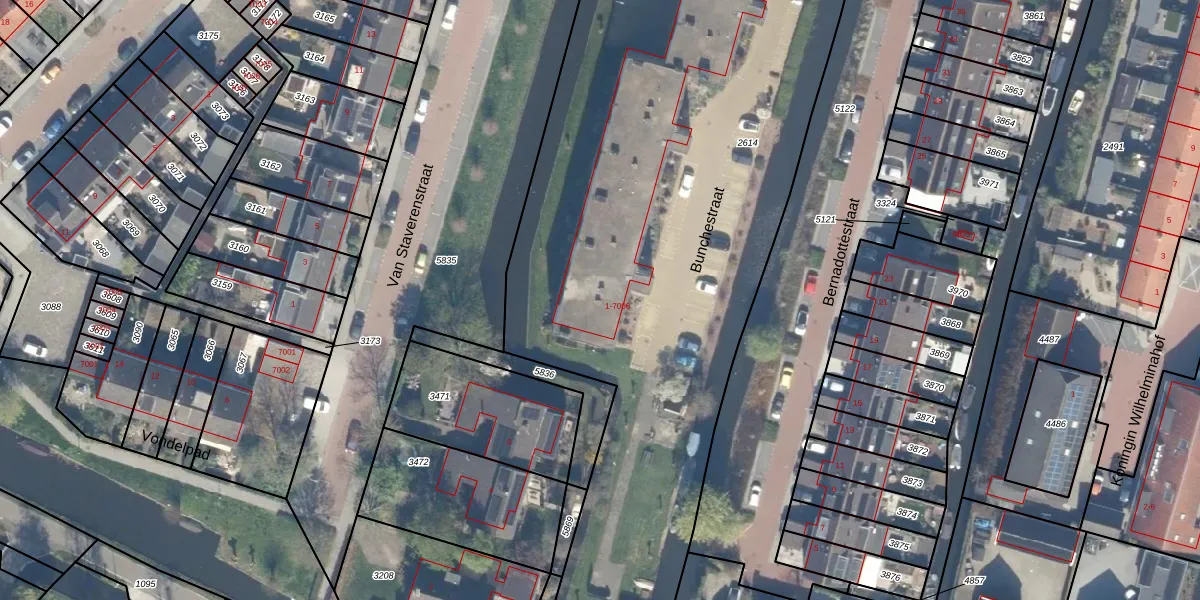 Het perceel waarop Bunchestraat 3 staat heeft een oppervlakte van 5005 m². Dit is een zeer groot perceel. De perceeloppervlakte wordt geregistreerd door het Kadaster. Gedetailleerde informatie over de maten van dit perceel kunt u vinden in het rapport Kadastrale kaart met maatvoering van Bunchestraat 3.
