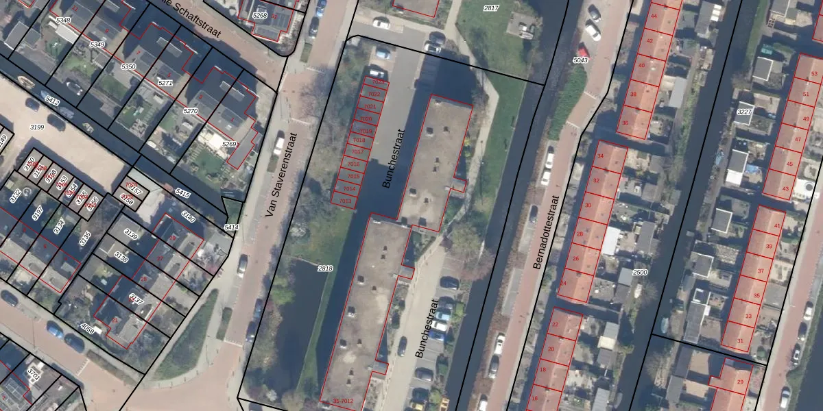 Het perceel waarop Bunchestraat 7012 staat heeft een oppervlakte van 4686 m². Dit is een zeer groot perceel. De perceeloppervlakte wordt geregistreerd door het Kadaster. Gedetailleerde informatie over de maten van dit perceel kunt u vinden in het rapport Kadastrale kaart met maatvoering van Bunchestraat 7012.