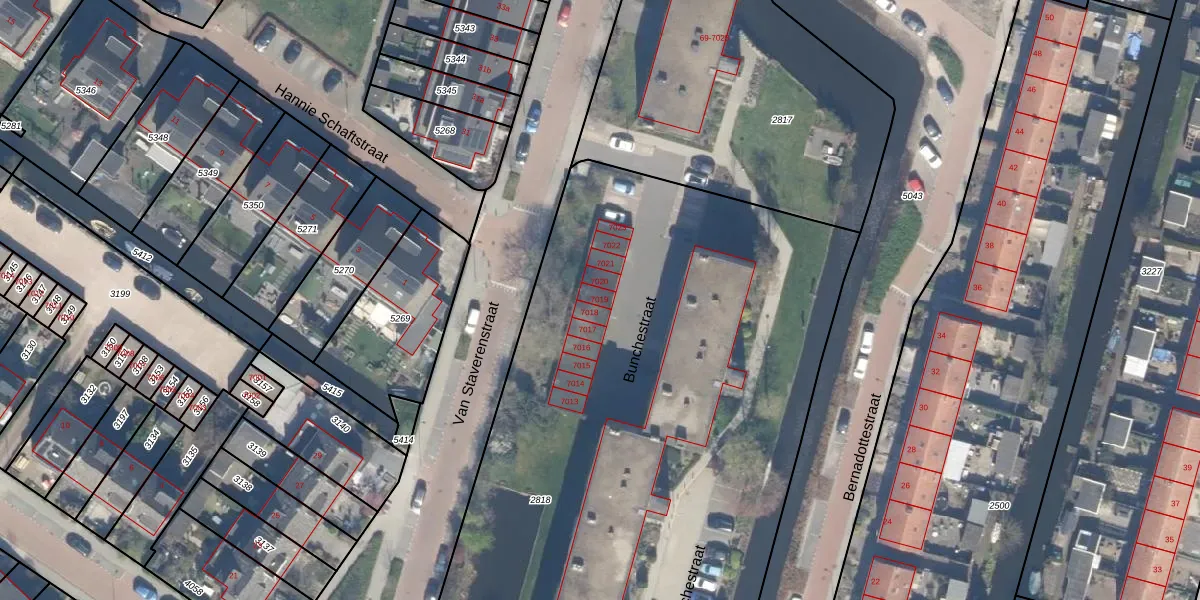 Bunchestraat 7019 is gelegen op kadastraal perceel RWK02B2818. Deze kadastrale aanduiding is uniek en wordt gebruikt door het Kadaster om eigendomsrechten en andere zakelijke rechten vast te leggen. Het perceel maakt onderdeel uit van de kadastrale gemeente Reeuwijk.