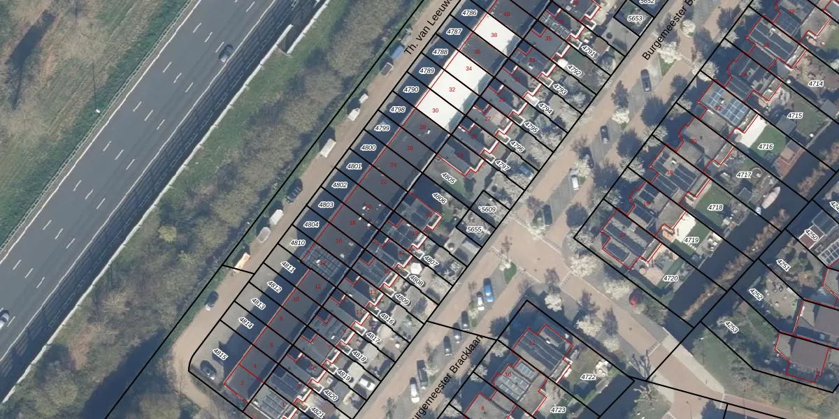Burgemeester Bracklaan 21 is gelegen op kadastraal perceel RWK02B4806. Deze kadastrale aanduiding is uniek en wordt gebruikt door het Kadaster om eigendomsrechten en andere zakelijke rechten vast te leggen. Het perceel maakt onderdeel uit van de kadastrale gemeente Reeuwijk.