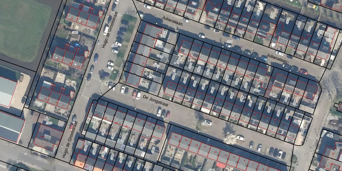 Het perceel waarop De Jongstraat 28 staat heeft een oppervlakte van 175 m². Dit is een middelgroot perceel. De perceeloppervlakte wordt geregistreerd door het Kadaster. Gedetailleerde informatie over de maten van dit perceel kunt u vinden in het rapport Kadastrale kaart met maatvoering van De Jongstraat 28.