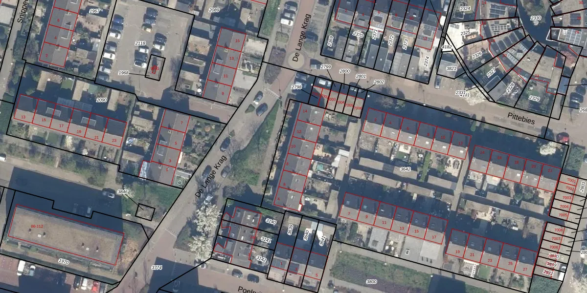 De Lange Krag 10 is gelegen op kadastraal perceel RWK02C3642. Deze kadastrale aanduiding is uniek en wordt gebruikt door het Kadaster om eigendomsrechten en andere zakelijke rechten vast te leggen. Het perceel maakt onderdeel uit van de kadastrale gemeente Reeuwijk.