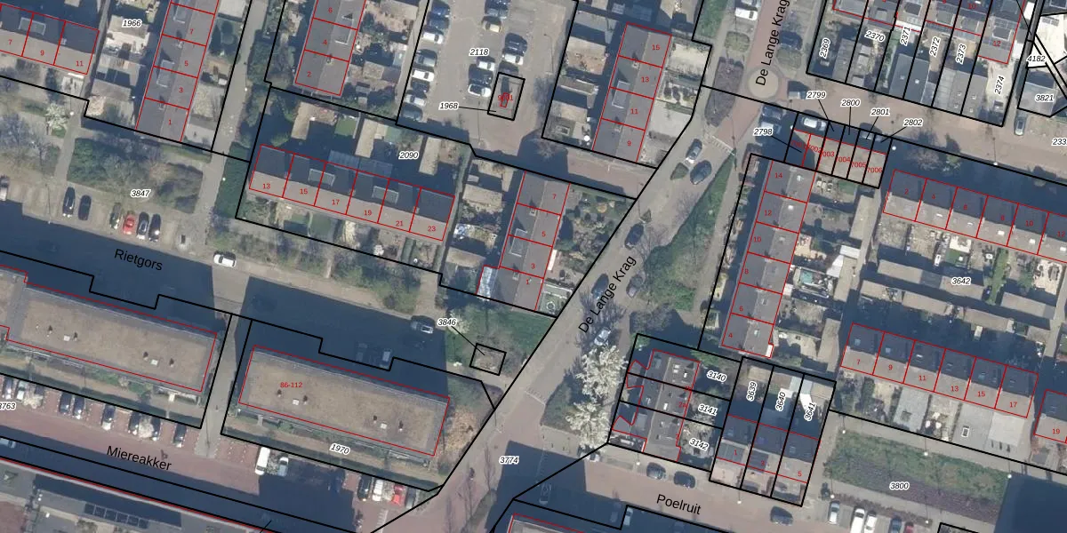 De Lange Krag 3 is gelegen op kadastraal perceel RWK02C2090. Deze kadastrale aanduiding is uniek en wordt gebruikt door het Kadaster om eigendomsrechten en andere zakelijke rechten vast te leggen. Het perceel maakt onderdeel uit van de kadastrale gemeente Reeuwijk.