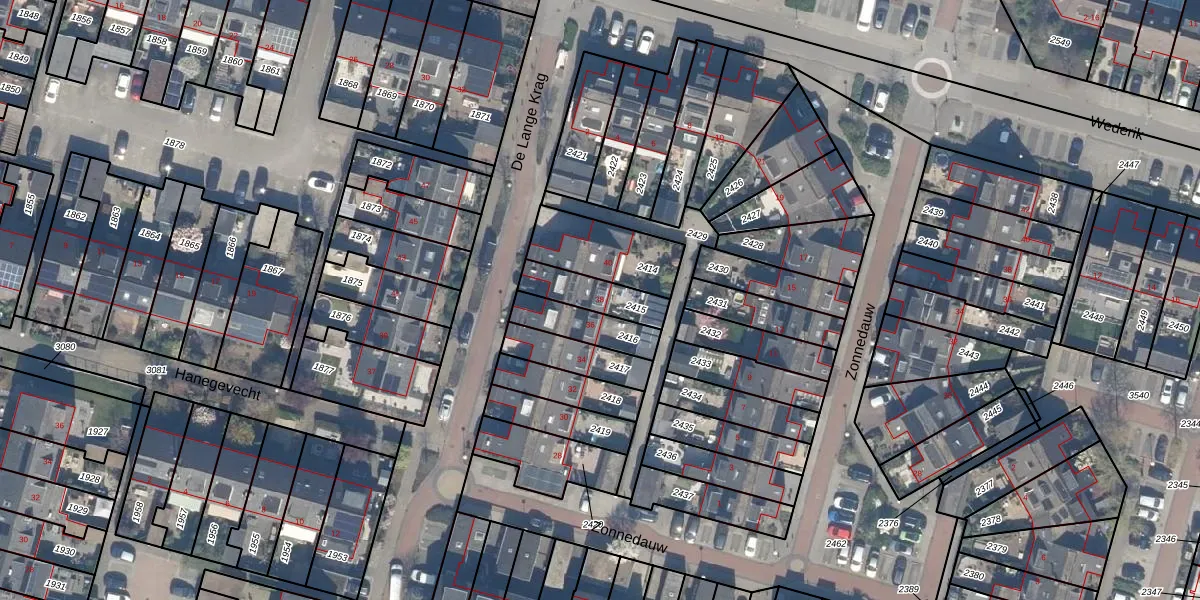 Gebruik de zoekbalk of klik op een perceel voor informatie over de adressen binnen dit perceel.