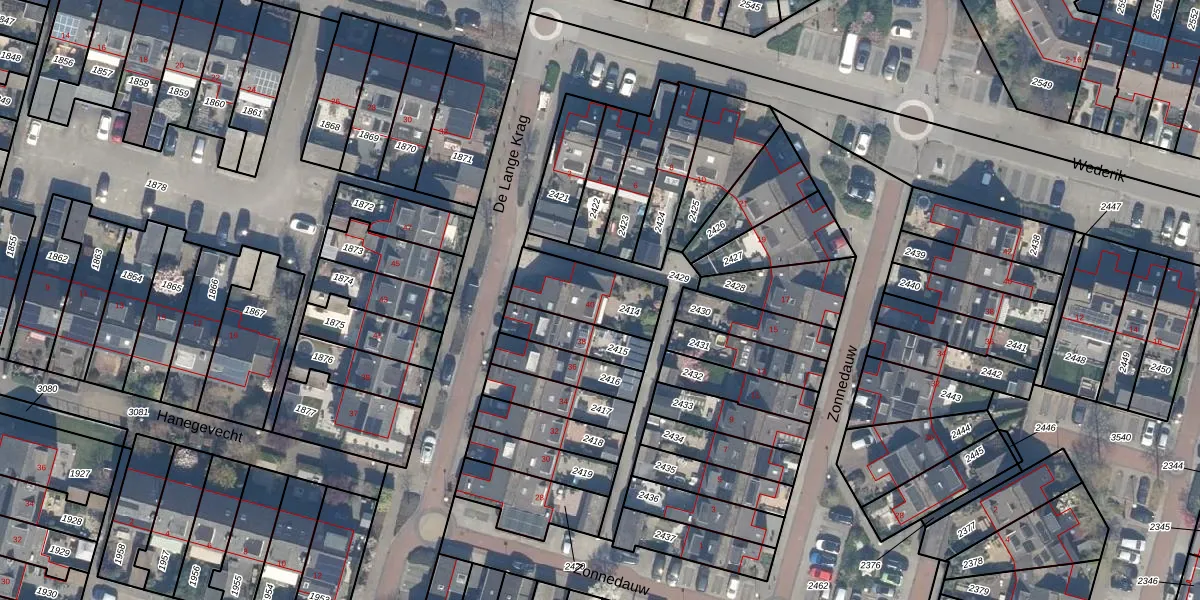 De Lange Krag 40 is gelegen op kadastraal perceel RWK02C2414. Deze kadastrale aanduiding is uniek en wordt gebruikt door het Kadaster om eigendomsrechten en andere zakelijke rechten vast te leggen. Het perceel maakt onderdeel uit van de kadastrale gemeente Reeuwijk.