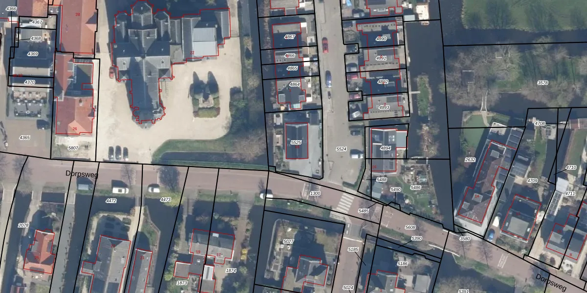 Dorpsweg 18 is gelegen op kadastraal perceel RWK02B5525. Deze kadastrale aanduiding is uniek en wordt gebruikt door het Kadaster om eigendomsrechten en andere zakelijke rechten vast te leggen. Het perceel maakt onderdeel uit van de kadastrale gemeente Reeuwijk.