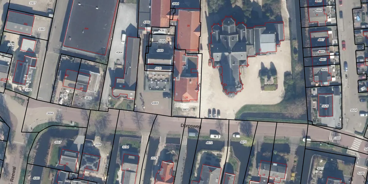 Dorpsweg 26-f is gelegen op kadastraal perceel RWK02B5807. Deze kadastrale aanduiding is uniek en wordt gebruikt door het Kadaster om eigendomsrechten en andere zakelijke rechten vast te leggen. Het perceel maakt onderdeel uit van de kadastrale gemeente Reeuwijk.