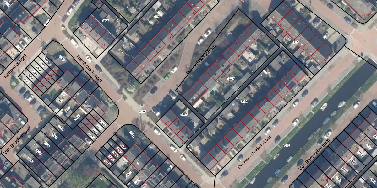 Dorus Rijkersstraat 2 is gelegen op kadastraal perceel RWK02B3077. Deze kadastrale aanduiding is uniek en wordt gebruikt door het Kadaster om eigendomsrechten en andere zakelijke rechten vast te leggen. Het perceel maakt onderdeel uit van de kadastrale gemeente Reeuwijk.