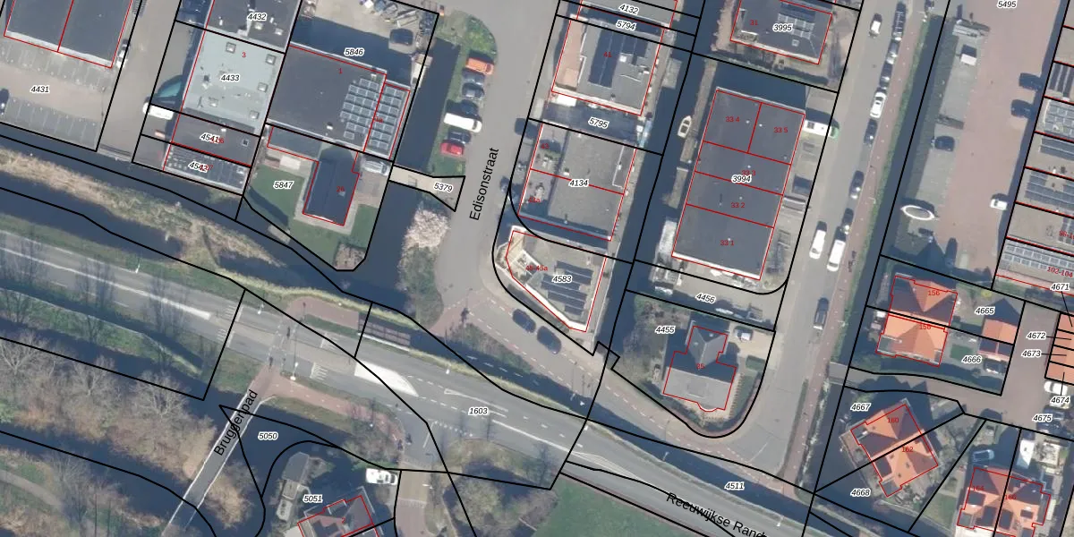 Edisonstraat 45-a is gelegen op kadastraal perceel RWK02B4583. Deze kadastrale aanduiding is uniek en wordt gebruikt door het Kadaster om eigendomsrechten en andere zakelijke rechten vast te leggen. Het perceel maakt onderdeel uit van de kadastrale gemeente Reeuwijk.