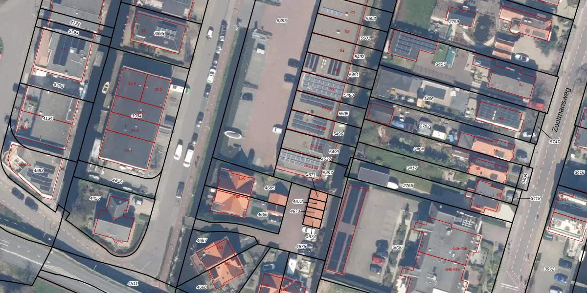 Het adres is gelegen op perceel 5499 in de sectie B en de kadastrale gemeente Reeuwijk. De kadastrale aanduiding is aldus RWK02-B-5499. Het perceel is 165 m² groot. Dat is kleiner dan de gemiddelde perceeloppervlakte in Reeuwijk, dat op 4985,57 m² ligt. Het grootste perceel in de kadastrale gemeente is 1,50 km². Het kleinste perceel heeft een oppervlakte van 0 m². Op het perceel liggen in totaal 2 adressen. In de Basisregistratie Kadaster (BRK) werden de grenzen van het perceel geregistreerd op 16-07-2019.