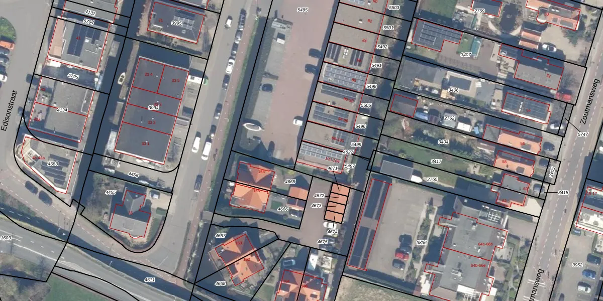 Het adres is gelegen op perceel 5497 in de sectie B en de kadastrale gemeente Reeuwijk. De kadastrale aanduiding is aldus RWK02-B-5497. Het perceel is 257 m² groot. Dat is kleiner dan de gemiddelde perceeloppervlakte in Reeuwijk, dat op 4985,57 m² ligt. Het grootste perceel in de kadastrale gemeente is 1,50 km². Het kleinste perceel heeft een oppervlakte van 0 m². Er zijn 2 adressen aanwezig op het perceel. De huidige grenzen van het perceel zijn digitaal in de Basisregistratie Kadaster (BRK) geregistreerd op 16-07-2019.