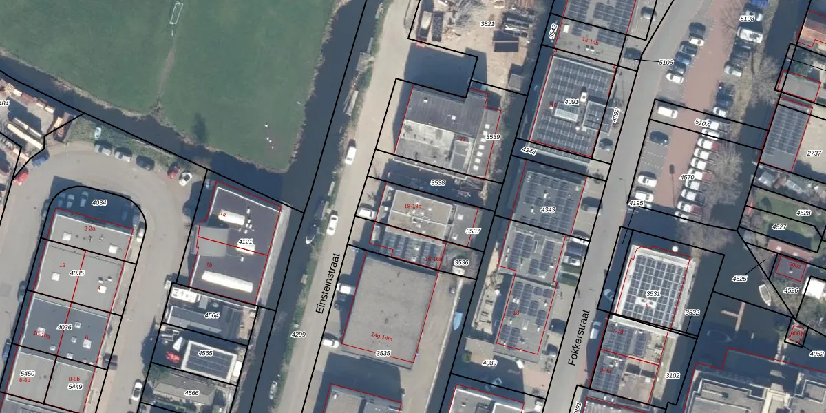 Einsteinstraat 18-b is gelegen op kadastraal perceel RWK02B3537. Deze kadastrale aanduiding is uniek en wordt gebruikt door het Kadaster om eigendomsrechten en andere zakelijke rechten vast te leggen. Het perceel maakt onderdeel uit van de kadastrale gemeente Reeuwijk.