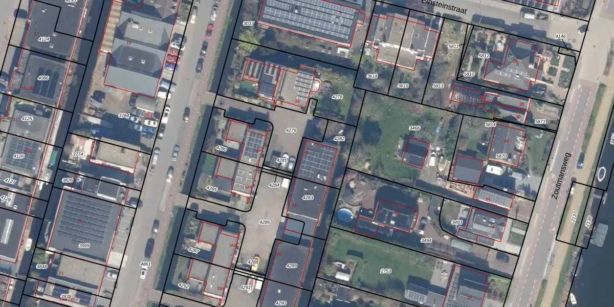 Einsteinstraat 52 is gelegen op kadastraal perceel RWK02B4282. Deze kadastrale aanduiding is uniek en wordt gebruikt door het Kadaster om eigendomsrechten en andere zakelijke rechten vast te leggen. Het perceel maakt onderdeel uit van de kadastrale gemeente Reeuwijk.