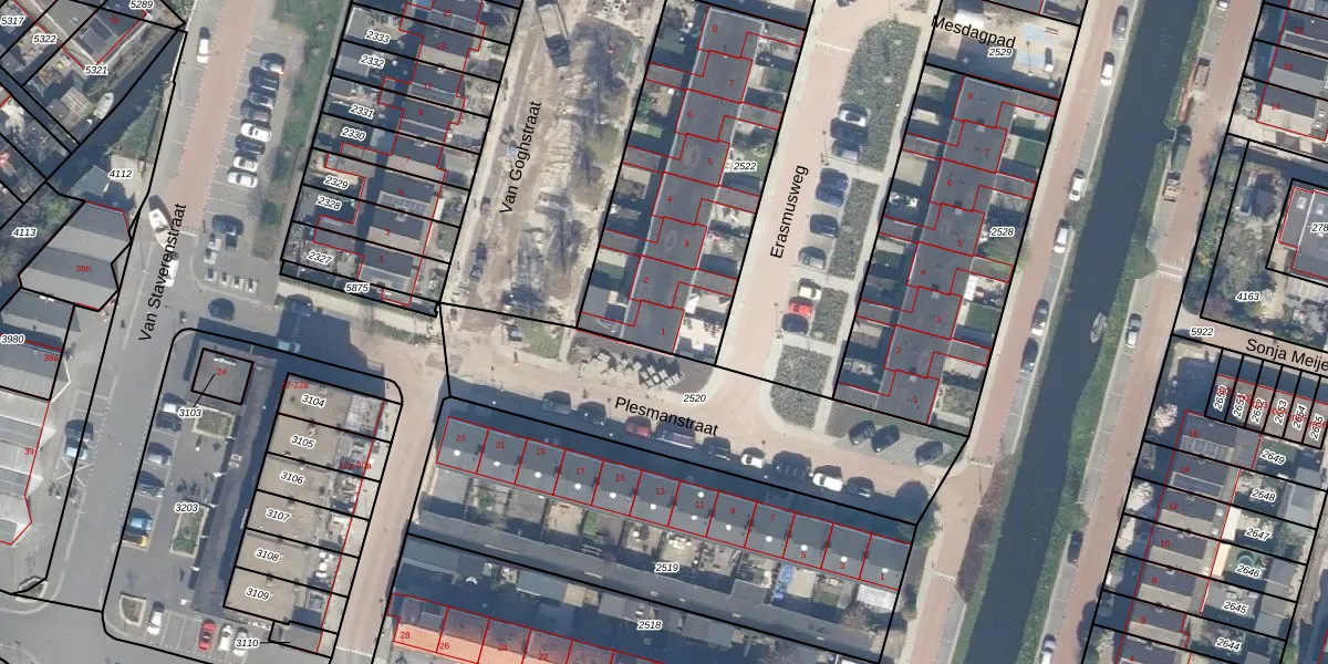 Het adres ligt op het perceel RWK02-B-2522, dat zich in de kadastrale gemeente Reeuwijk bevindt. Het perceel is kleiner dan gemiddeld in Reeuwijk. Het perceel is 1135 m² groot, terwijl het gemiddelde ligt op 4973,45 m². Het kleinste perceel in de kadastrale gemeente is 0 m² groot. De grootste perceeloppervlakte is 1,50 km². Er zijn 8 adressen aanwezig op het perceel. De laatste wijziging in het de Basisregistratie Kadaster (BRK) was op 05-02-1998.