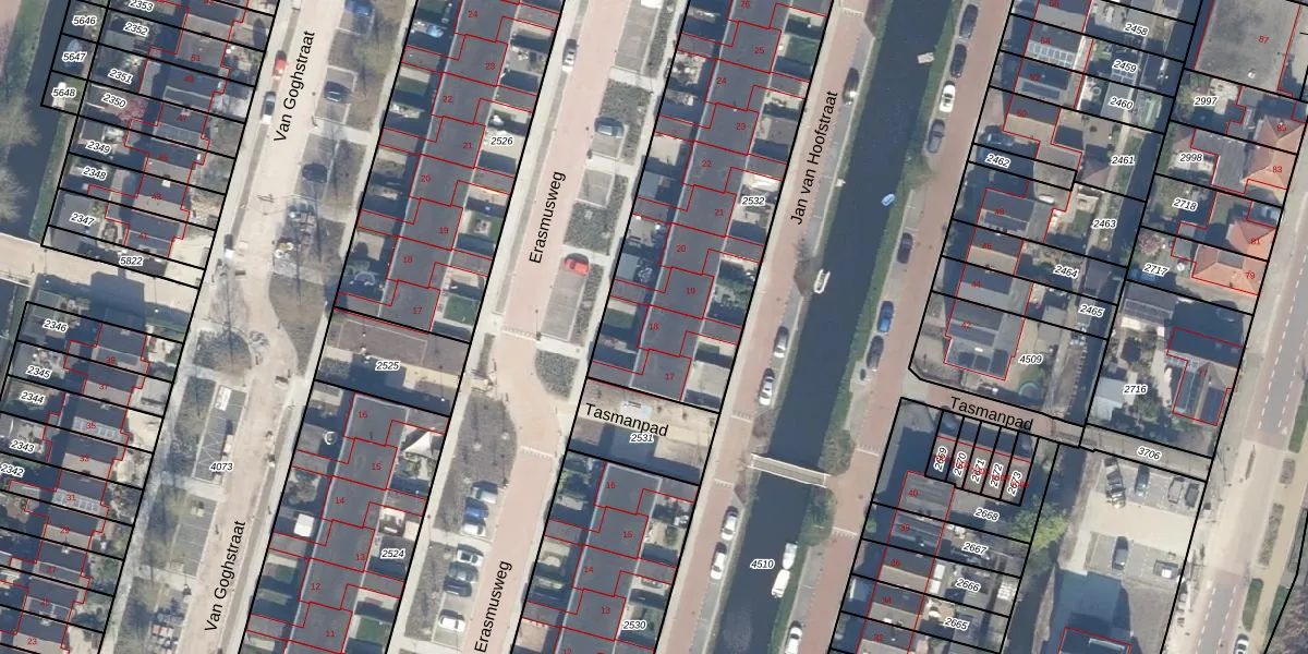 Erasmusweg 18 is gelegen op kadastraal perceel RWK02B2532. Deze kadastrale aanduiding is uniek en wordt gebruikt door het Kadaster om eigendomsrechten en andere zakelijke rechten vast te leggen. Het perceel maakt onderdeel uit van de kadastrale gemeente Reeuwijk.
